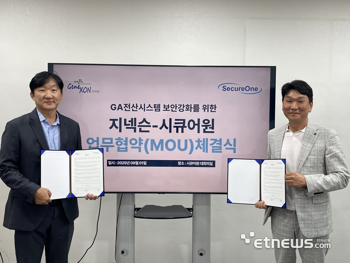 시큐어원, 지넥슨과 MOU…GA 전산시스템 보안 강화